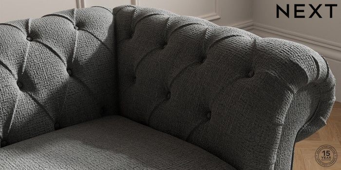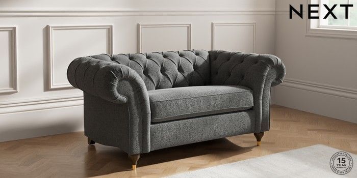 7.2.10 Gosford II Deep Sit 2 Seater Small Sofa Chunky Texture Dark Grey Modern Turned Metal Cap - Mid | Made Click here to use our website with more accessibility support, for example screen readers