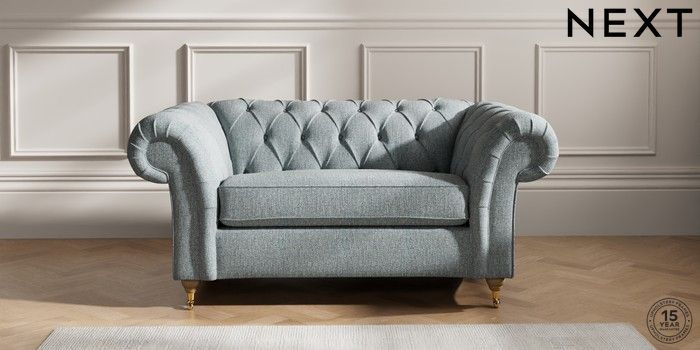 7.2.10 Gosford II Deep Sit 2 Seater Small Sofa Chunky Weave Mid Blue Castor - Light | Made Click here to use our website with more accessibility support, for example screen readers
