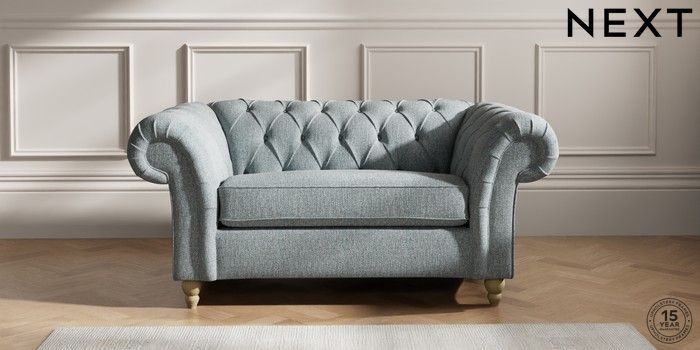 7.2.10 Gosford II Deep Sit 2 Seater Small Sofa Chunky Weave Mid Blue Low Turned - Light | Made Click here to use our website with more accessibility support, for example screen readers