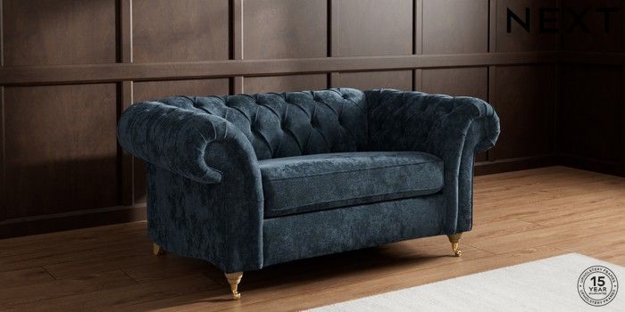 7.2.10 Gosford II Deep Sit 2 Seater Small Sofa Distressed Velour Midnight Blue Castor - Light | Made Click here to use our website with more accessibility support, for example screen readers