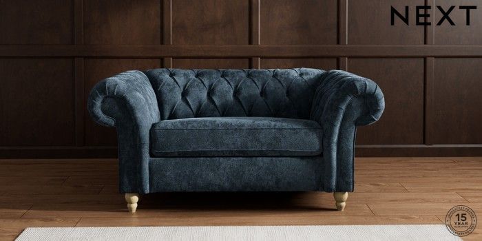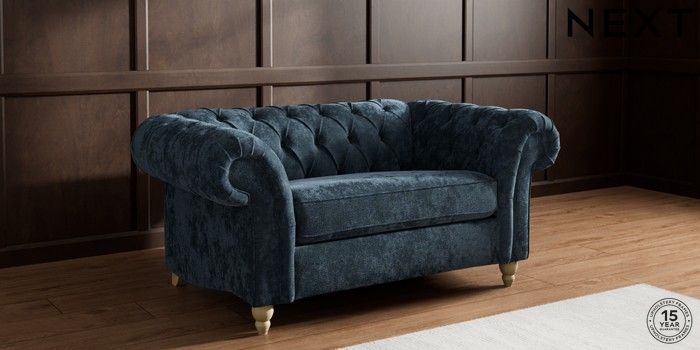 7.2.10 Gosford II Deep Sit 2 Seater Small Sofa Distressed Velour Midnight Blue Low Turned - Light | Made Click here to use our website with more accessibility support, for example screen readers