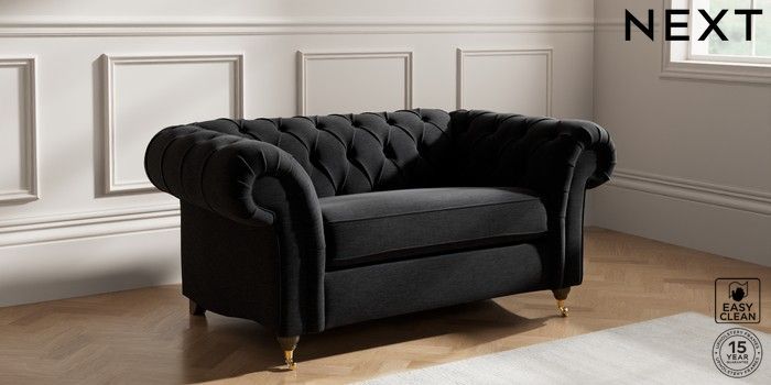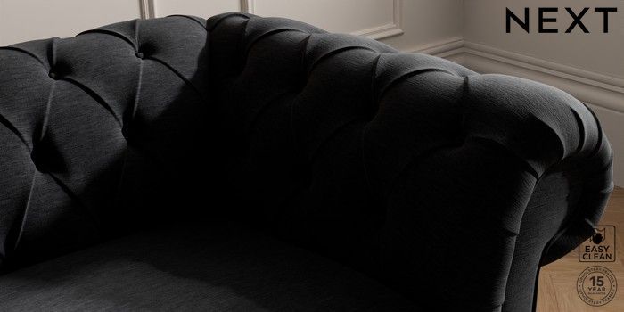 7.2.10 Gosford II Deep Sit 2 Seater Small Sofa Fine Chenille Easy Clean Black Castor - Mid | Made Click here to use our website with more accessibility support, for example screen readers