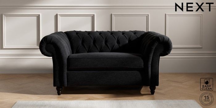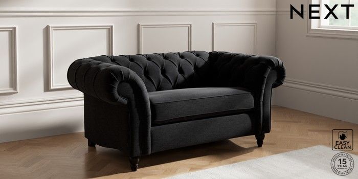 7.2.10 Gosford II Deep Sit 2 Seater Small Sofa Fine Chenille Easy Clean Black Low Turned - Dark | Made Click here to use our website with more accessibility support, for example screen readers