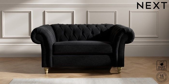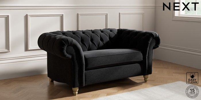 7.2.10 Gosford II Deep Sit 2 Seater Small Sofa Fine Chenille Easy Clean Black Low Turned - Light | Made Click here to use our website with more accessibility support, for example screen readers