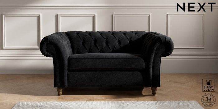 7.2.10 Gosford II Deep Sit 2 Seater Small Sofa Fine Chenille Easy Clean Black Low Turned - Mid | Made Click here to use our website with more accessibility support, for example screen readers
