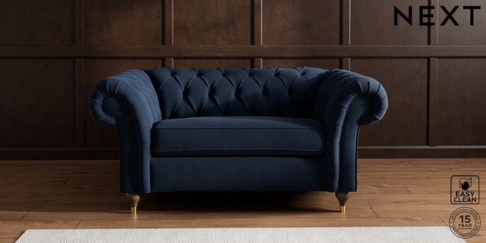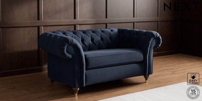 7.2.10 Gosford II Deep Sit 2 Seater Small Sofa Fine Chenille Easy Clean Dark Navy Blue Modern Turned Metal Cap - Mid | Made Click here to use our website with more accessibility support, for example screen readers