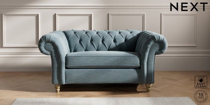 7.2.10 Gosford II Deep Sit 2 Seater Small Sofa Fine Chenille Easy Clean Mid Blue Low Turned - Light | Made Click here to use our website with more accessibility support, for example screen readers