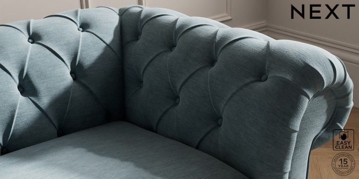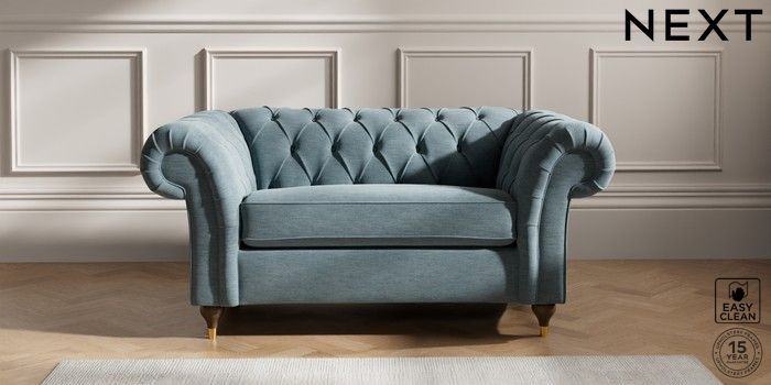 7.2.10 Gosford II Deep Sit 2 Seater Small Sofa Fine Chenille Easy Clean Mid Blue Modern Turned Metal Cap - Mid | Made Click here to use our website with more accessibility support, for example screen readers