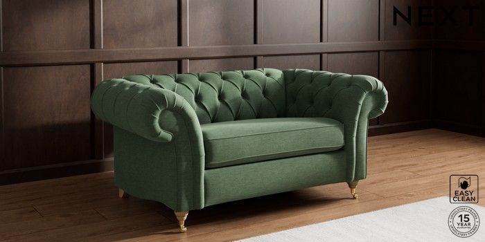 7.2.10 Gosford II Deep Sit 2 Seater Small Sofa Fine Chenille Easy Clean Mid Khaki Green Castor - Light | Made Click here to use our website with more accessibility support, for example screen readers