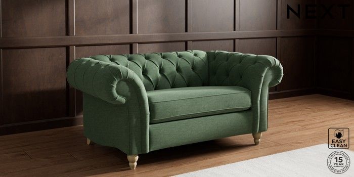 7.2.10 Gosford II Deep Sit 2 Seater Small Sofa Fine Chenille Easy Clean Mid Khaki Green Low Turned - Light | Made Click here to use our website with more accessibility support, for example screen readers