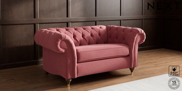 7.2.10 Gosford II Deep Sit 2 Seater Small Sofa Fine Chenille Easy Clean Mid Pink Modern Turned Metal Cap - Mid | Made Click here to use our website with more accessibility support, for example screen readers