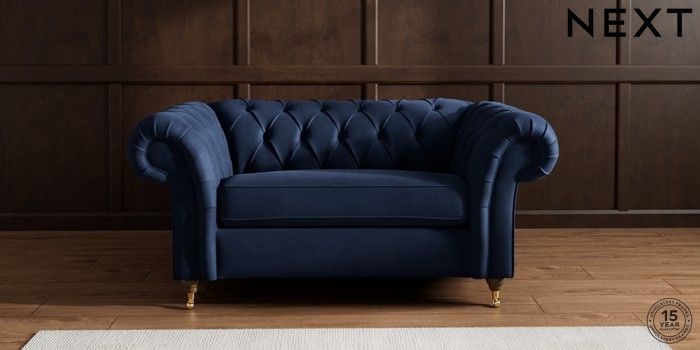 7.2.10 Gosford II Deep Sit 2 Seater Small Sofa Luxe Chenille Navy Blue Castor - Mid | Made Click here to use our website with more accessibility support, for example screen readers