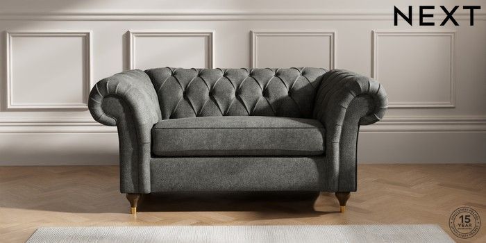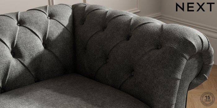 7.2.10 Gosford II Deep Sit 2 Seater Small Sofa Plush Chenille Dark Grey Modern Turned Metal Cap - Mid | Made Click here to use our website with more accessibility support, for example screen readers