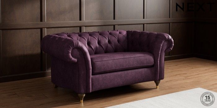 7.2.10 Gosford II Deep Sit 2 Seater Small Sofa Plush Chenille Dark Plum Purple Modern Turned Metal Cap - Mid | Made Click here to use our website with more accessibility support, for example screen readers