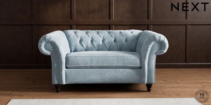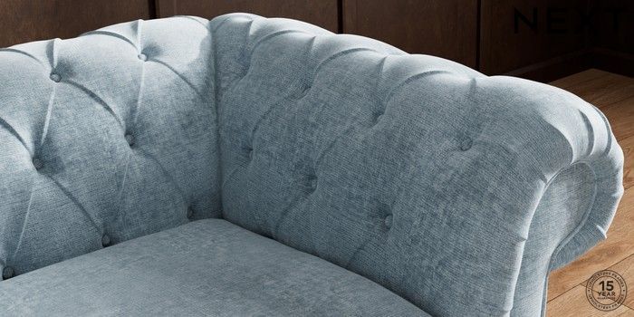 7.2.10 Gosford II Deep Sit 2 Seater Small Sofa Plush Chenille Light Blue Low Turned - Dark | Made Click here to use our website with more accessibility support, for example screen readers