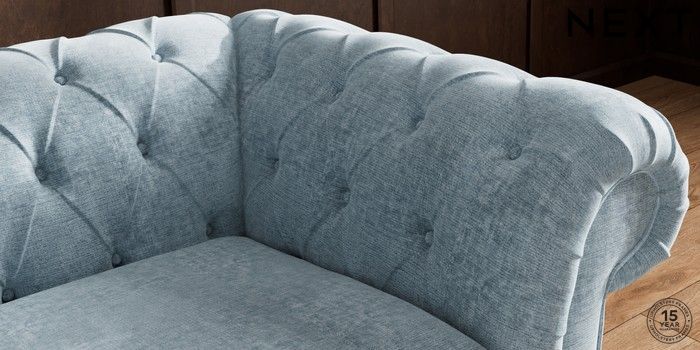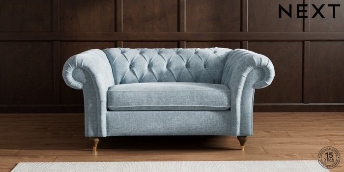 7.2.10 Gosford II Deep Sit 2 Seater Small Sofa Plush Chenille Light Blue Modern Turned Metal Cap - Mid | Made Click here to use our website with more accessibility support, for example screen readers