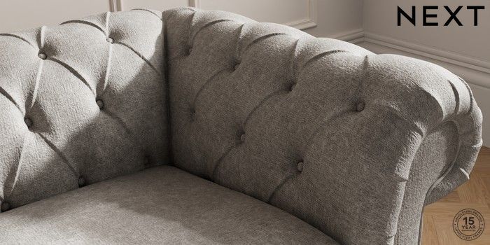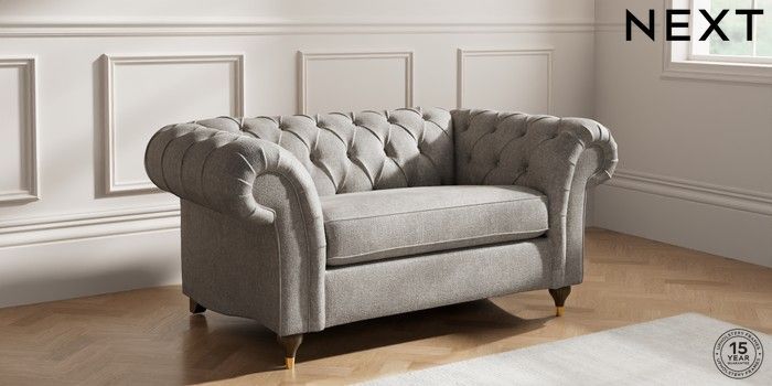 7.2.10 Gosford II Deep Sit 2 Seater Small Sofa Plush Chenille Light Grey Modern Turned Metal Cap - Mid | Made Click here to use our website with more accessibility support, for example screen readers