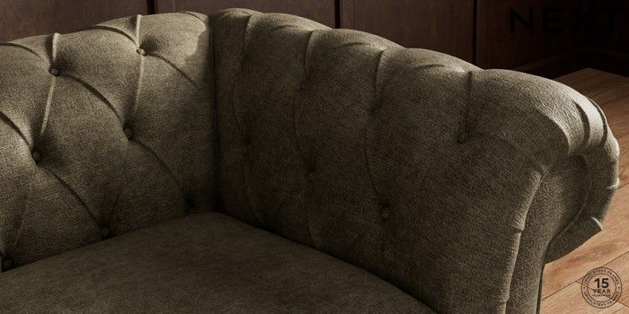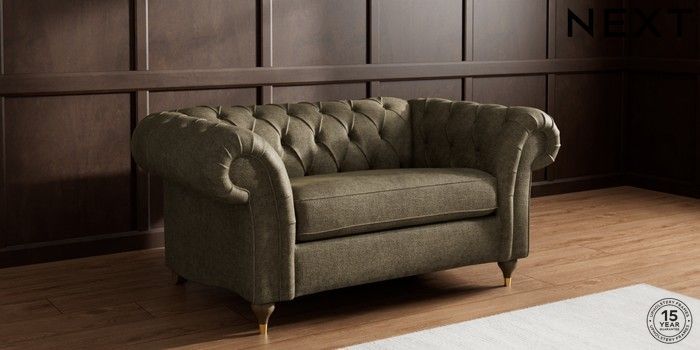 7.2.10 Gosford II Deep Sit 2 Seater Small Sofa Plush Chenille Moss Green Modern Turned Metal Cap - Mid | Made Click here to use our website with more accessibility support, for example screen readers