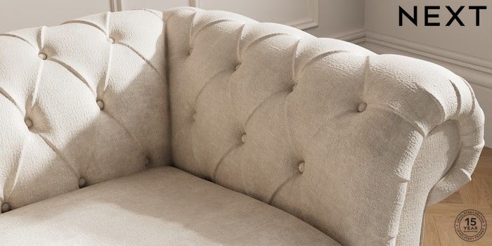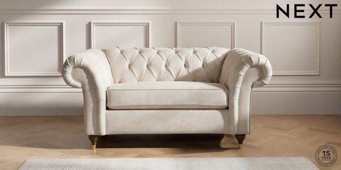 7.2.10 Gosford II Deep Sit 2 Seater Small Sofa Plush Chenille Oyster Modern Turned Metal Cap - Mid | Made Click here to use our website with more accessibility support, for example screen readers