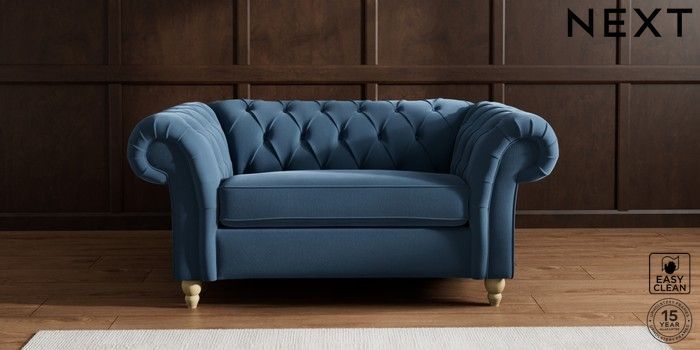 7.2.10 Gosford II Deep Sit 2 Seater Small Sofa Plush Velvet Easy Clean Airforce Blue Low Turned - Light | Made Click here to use our website with more accessibility support, for example screen readers