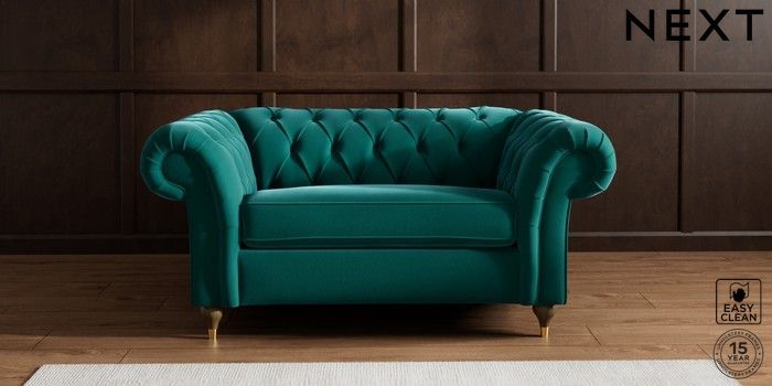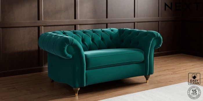 7.2.10 Gosford II Deep Sit 2 Seater Small Sofa Plush Velvet Easy Clean Juniper Green Modern Turned Metal Cap - Mid | Made Click here to use our website with more accessibility support, for example screen readers