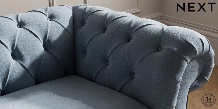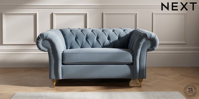 7.2.10 Gosford II Deep Sit 2 Seater Small Sofa Relaxed Linen Look Mid Blue Castor - Light | Made Click here to use our website with more accessibility support, for example screen readers