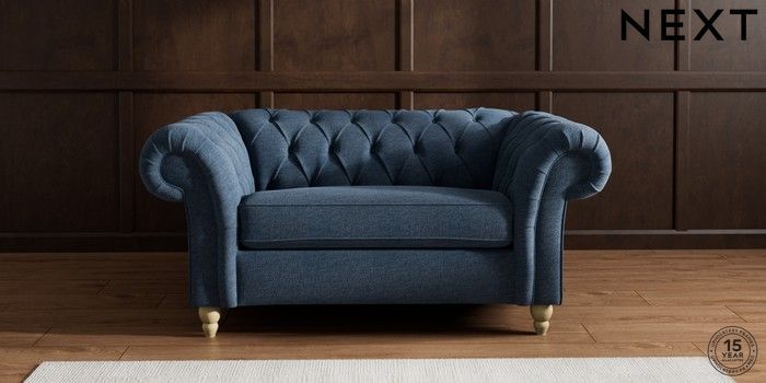 7.2.10 Gosford II Deep Sit 2 Seater Small Sofa Ripple Chenille Dark Blue Low Turned - Light | Made Click here to use our website with more accessibility support, for example screen readers