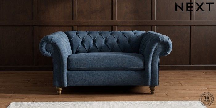 7.2.10 Gosford II Deep Sit 2 Seater Small Sofa Ripple Chenille Dark Blue Low Turned - Mid | Made Click here to use our website with more accessibility support, for example screen readers