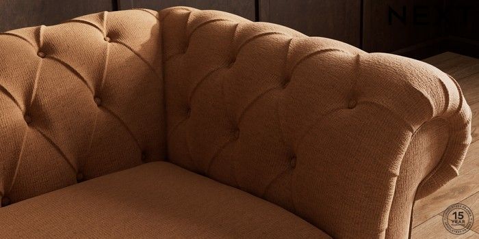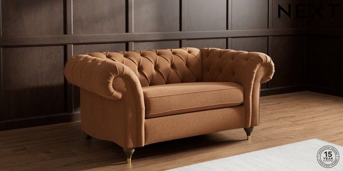 7.2.10 Gosford II Deep Sit 2 Seater Small Sofa Ripple Chenille Mid Rust Brown Modern Turned Metal Cap - Mid | Made Click here to use our website with more accessibility support, for example screen readers