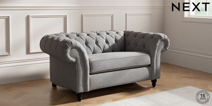 7.2.10 Gosford II Deep Sit 2 Seater Small Sofa Studio Chenille Mid Grey Low Turned - Dark | Made Click here to use our website with more accessibility support, for example screen readers