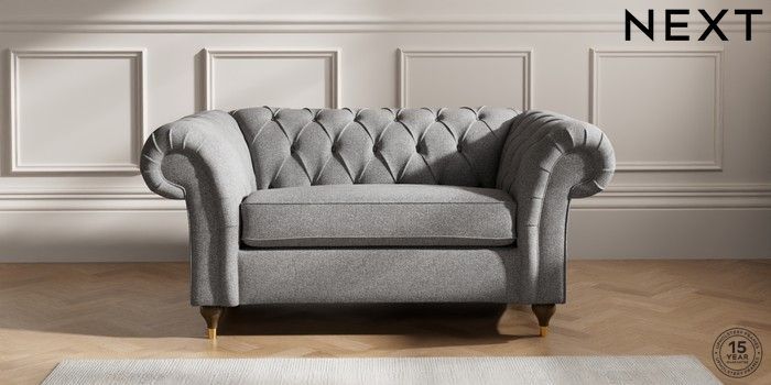 7.2.10 Gosford II Deep Sit 2 Seater Small Sofa Studio Chenille Mid Grey Modern Turned Metal Cap - Mid | Made Click here to use our website with more accessibility support, for example screen readers