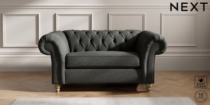 7.2.10 Gosford II Deep Sit 2 Seater Small Sofa Tweedy Blend Easy Clean Charcoal Grey Low Turned - Light | Made Click here to use our website with more accessibility support, for example screen readers