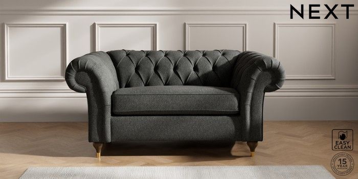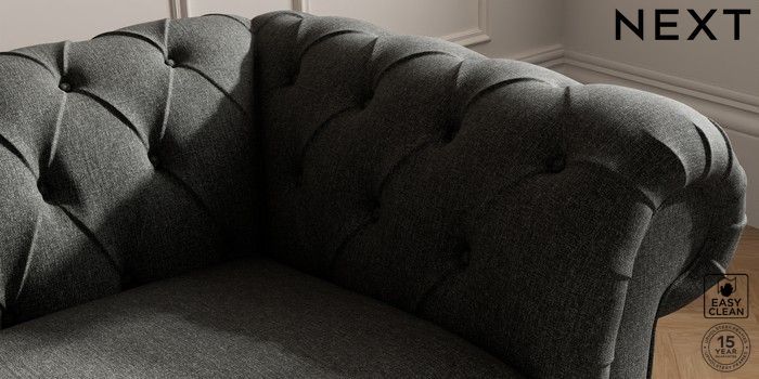 7.2.10 Gosford II Deep Sit 2 Seater Small Sofa Tweedy Blend Easy Clean Charcoal Grey Modern Turned Metal Cap - Mid | Made Click here to use our website with more accessibility support, for example screen readers
