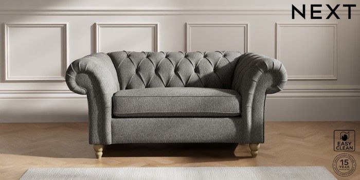 7.2.10 Gosford II Deep Sit 2 Seater Small Sofa Tweedy Blend Easy Clean Dark Grey Low Turned - Light | Made Click here to use our website with more accessibility support, for example screen readers