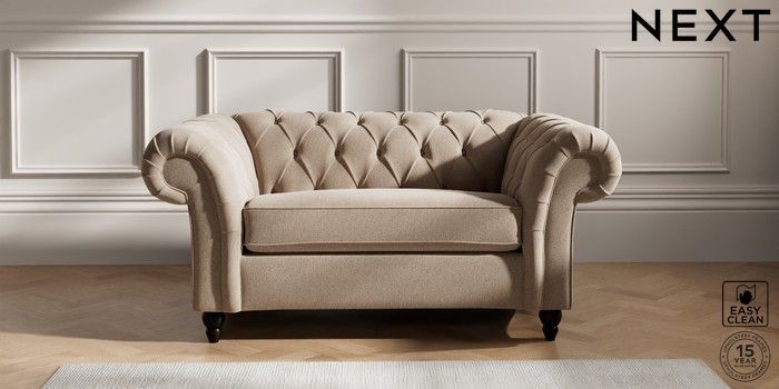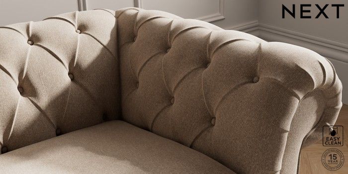 7.2.10 Gosford II Deep Sit 2 Seater Small Sofa Tweedy Blend Easy Clean Light Dove Natural Low Turned - Dark | Made Click here to use our website with more accessibility support, for example screen readers