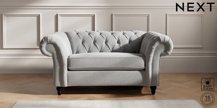 7.2.10 Gosford II Deep Sit 2 Seater Small Sofa Tweedy Blend Easy Clean Light Silver Grey Low Turned - Dark | Made Click here to use our website with more accessibility support, for example screen readers