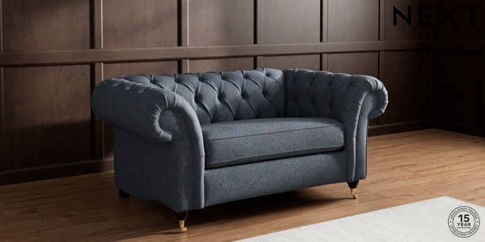 7.2.10 Gosford II Deep Sit 2 Seater Small Sofa Tweedy Chenille Navy Blue Castor - Dark | Made Click here to use our website with more accessibility support, for example screen readers