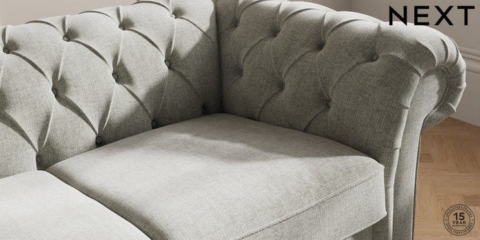 7.2.10 Gosford II Deep Sit 2 Seater Sofa Chunky Chenille Light Grey Modern Turned Metal Cap - Mid | Made Click here to use our website with more accessibility support, for example screen readers