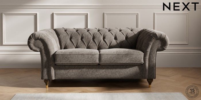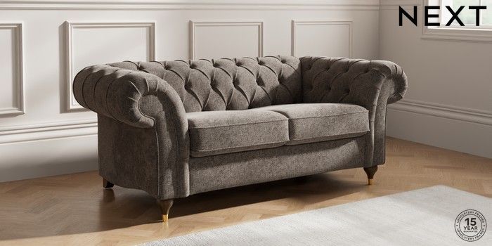 7.2.10 Gosford II Deep Sit 2 Seater Sofa Chunky Chenille Mink Brown Modern Turned Metal Cap - Mid | Made Click here to use our website with more accessibility support, for example screen readers