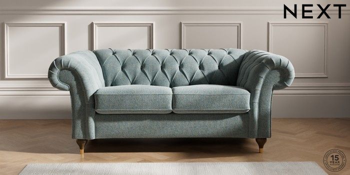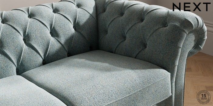 7.2.10 Gosford II Deep Sit 2 Seater Sofa Chunky Marl Mid Blue Modern Turned Metal Cap - Mid | Made Click here to use our website with more accessibility support, for example screen readers