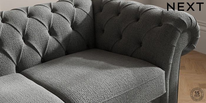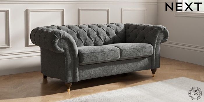 7.2.10 Gosford II Deep Sit 2 Seater Sofa Chunky Texture Dark Grey Modern Turned Metal Cap - Mid | Made Click here to use our website with more accessibility support, for example screen readers
