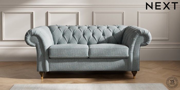 7.2.10 Gosford II Deep Sit 2 Seater Sofa Chunky Weave Mid Blue Modern Turned Metal Cap - Mid | Made Click here to use our website with more accessibility support, for example screen readers