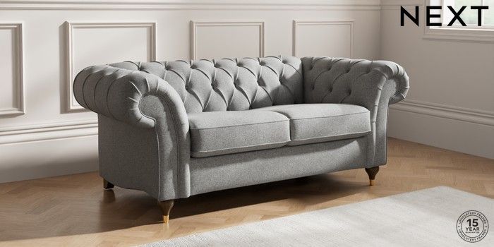 7.2.10 Gosford II Deep Sit 2 Seater Sofa Chunky Weave Mid Grey Modern Turned Metal Cap - Mid | Made Click here to use our website with more accessibility support, for example screen readers