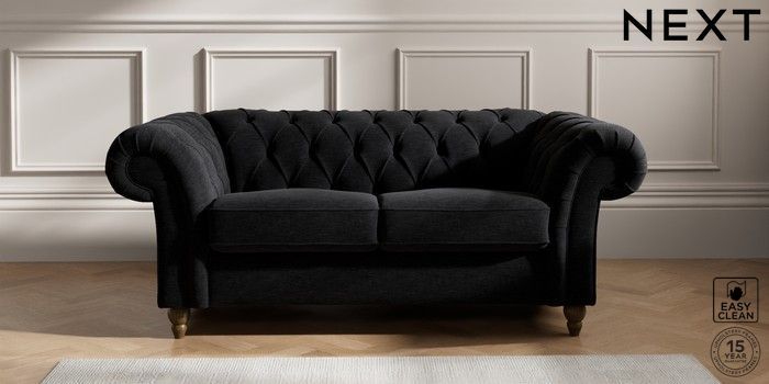 7.2.10 Gosford II Deep Sit 2 Seater Sofa Fine Chenille Easy Clean Black Low Turned - Mid | Made Click here to use our website with more accessibility support, for example screen readers