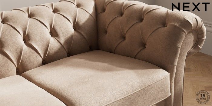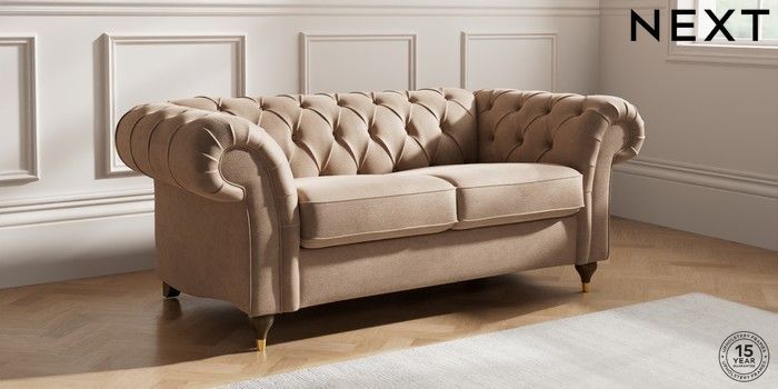 7.2.10 Gosford II Deep Sit 2 Seater Sofa Luxe Chenille Mid Natural Modern Turned Metal Cap - Mid | Made Click here to use our website with more accessibility support, for example screen readers
