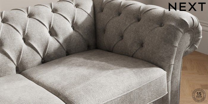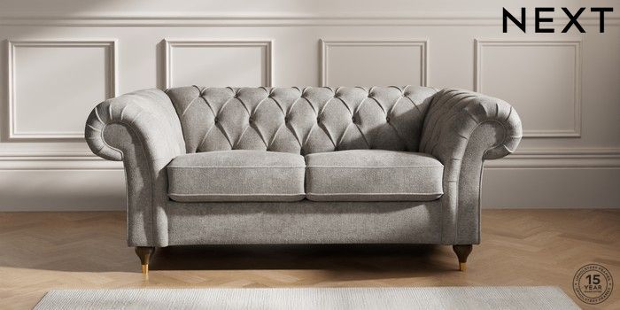 7.2.10 Gosford II Deep Sit 2 Seater Sofa Plush Chenille Light Grey Modern Turned Metal Cap - Mid | Made Click here to use our website with more accessibility support, for example screen readers