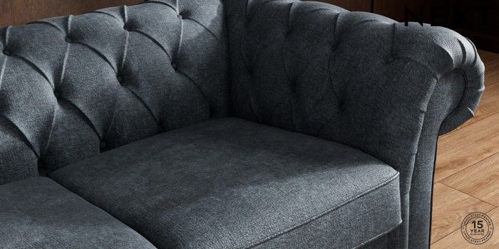 7.2.10 Gosford II Deep Sit 2 Seater Sofa Plush Chenille Slate Blue Modern Turned Metal Cap - Mid | Made Click here to use our website with more accessibility support, for example screen readers