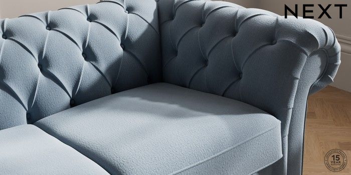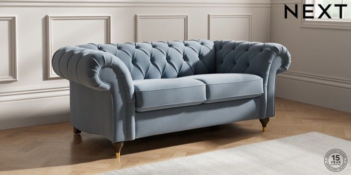 7.2.10 Gosford II Deep Sit 2 Seater Sofa Relaxed Linen Look Mid Blue Modern Turned Metal Cap - Mid | Made Click here to use our website with more accessibility support, for example screen readers
