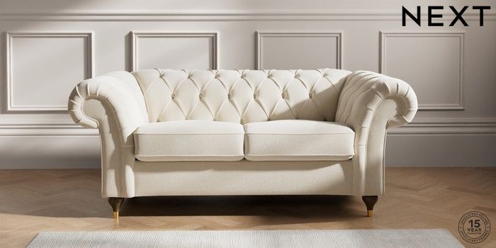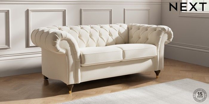 7.2.10 Gosford II Deep Sit 2 Seater Sofa Ripple Chenille Oyster Modern Turned Metal Cap - Mid | Made Click here to use our website with more accessibility support, for example screen readers