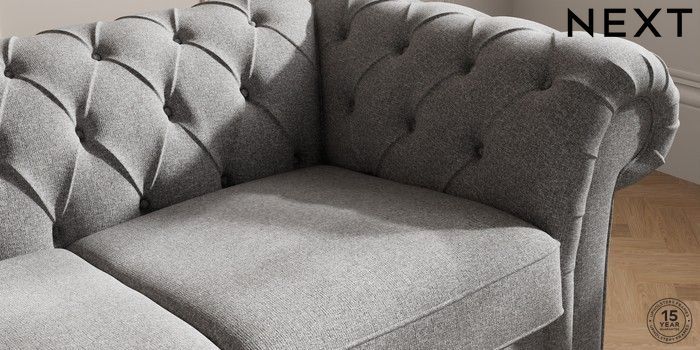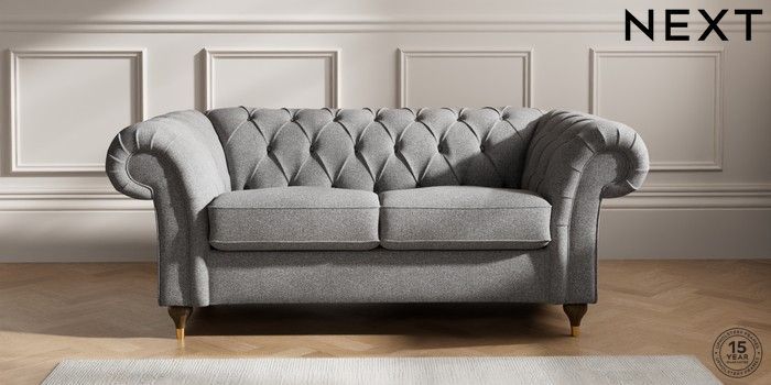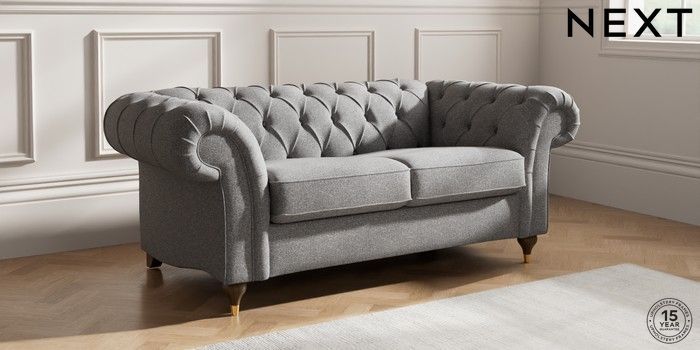 7.2.10 Gosford II Deep Sit 2 Seater Sofa Studio Chenille Mid Grey Modern Turned Metal Cap - Mid | Made Click here to use our website with more accessibility support, for example screen readers